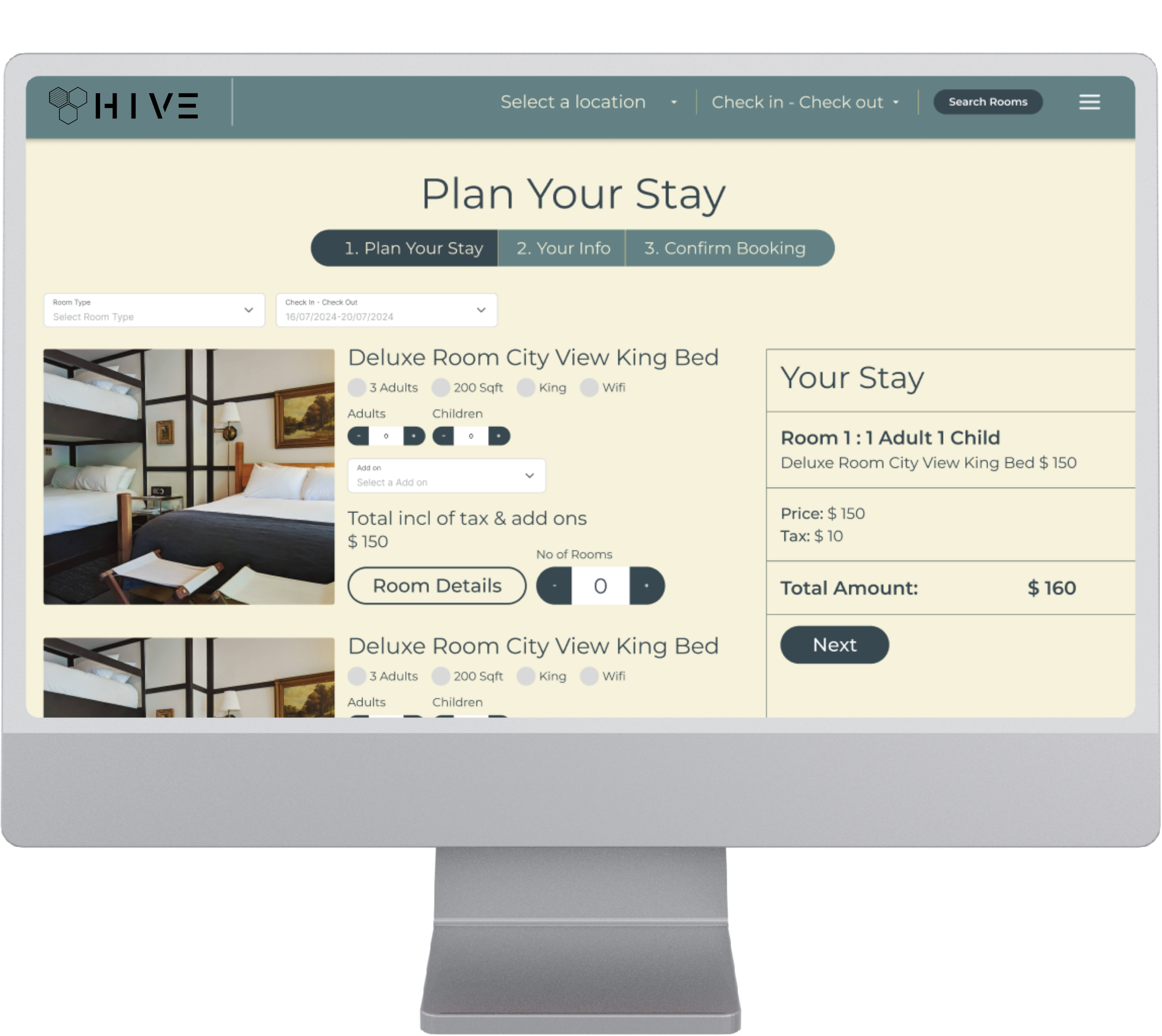 Eliminate costly OTA commissions with Hive. Designed to boost direct bookings, Hive empowers your guests to book directly with your hotel, offering a seamless, commission-free booking experience.